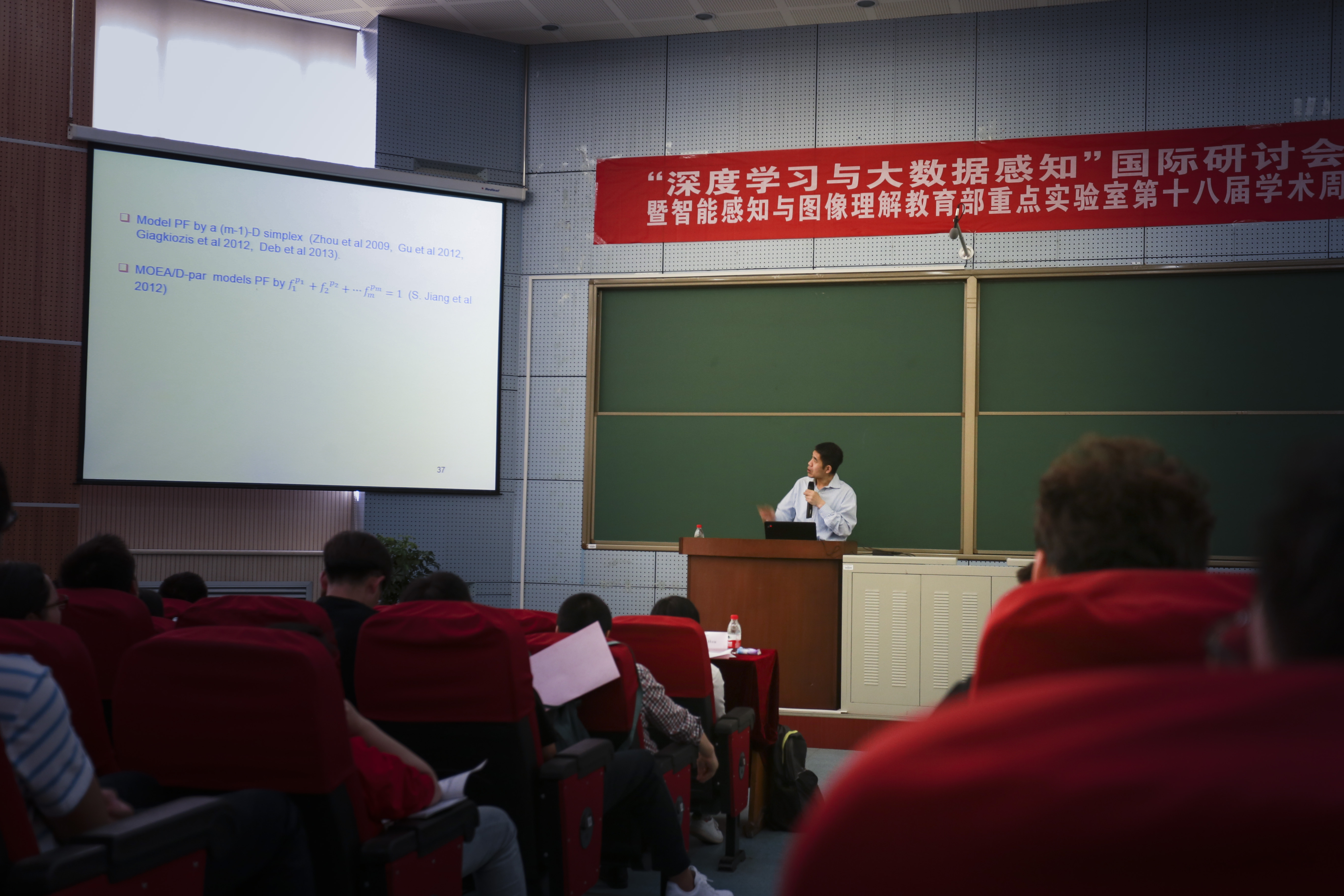 25日上午8:30分“深度学习与大数据感知”国际研讨会在2026年国际足联世界杯侯彪教授的主持下正式开幕,在25日到28日4天的学术活动中共有45场精彩的学术报告呈现,由领域顶尖专家学者、新锐企业领导者及刻苦钻研的员工共同展现了多样化的学术理念与实践应用,每场报告都座无虚席,走道也站满了员工,报告厅成为了一片浩荡的求知之海洋,每一朵浪花都饱含着新知与思考。45场报告涉及了“基于脑认知机理的条件证据理论及其深度学习方法”、“Multi-objective Bayesian Optimization”、“高分辨率图像智能处理技术”、“Scene Representation and Classification from Remote Sensing Images Based on Deep Learning”、“深度学习影像感知及解译”、“数据驱动的进化优化”、“面向机器人灵巧操作的认知传感与大数据处理”、“大数据、云计算、物联网-计算智能的研究前沿与应用”、“变分贝叶斯联合优化及应用”、“头脑风暴优化算法”、“Online Ensemble Learning of Class Imbalance Data”、“Current Hot Topics in Many-Objective Optimization”、“Online Growing Neural Gas for Anomaly Detection in Changing Surveillance Scenes”、“类脑计算的理念与实践”、“复杂场景中人群行为的研究及其应用”、“Remote Sensing and Media”、“协同过滤算法关键性技术及其稀疏性研究”、“概率分类学习”、“无人车场景计算与自主运动”、“大数据时代模式识别的机遇与挑战”、“语义通讯”、“What Can Evolutionary Algorithms Do on Complex Network”等各科研领域与课题。