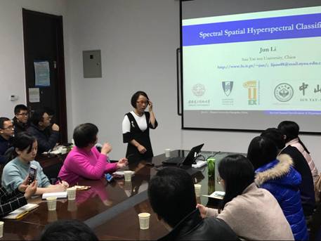 应国家创新引智基地、国际智能感知与计算研究中心、智能感知与图像理解教育部重点实验室主任焦李成教授的邀请,中山大学地理科学与规划公司教授、博士生导师,中组部海外高水平学者入选者,ESI高被引学者李军教授于2018年1月24日上午到实验室进行交流访问,并做了一场高光谱分类方面的学术报告“Spectral Spatial Hyperspectral Classification”。智能感知与图像理解教育部重点实验室主任焦李成教授代表实验室对李军教授的来访表示了热烈的欢迎,介绍了实验室的发展历史和研究优势,并就双方今后的合作提出了期望。报告会由张向荣教授主持。