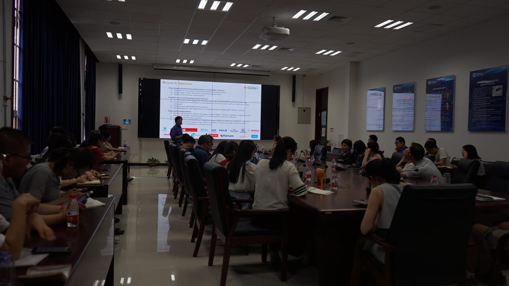 Tan教授的报告围绕多目标优化问题的实际应用展开。首先,Tan教授简要介绍了利用进化计算方法求解多目标优化问题的基本原理,并介绍了演化计算在多目标优化实际应用中存在的机遇和挑战。然后,介绍了他的团队在基于进化计算的多目标优化问题上所做的理论探索与应用研究,主要集中在用多目标优化结合深度置信网络来预测电钻寿命。最后,Tan教授还与公司师生就多个问题进行了深入的探讨。