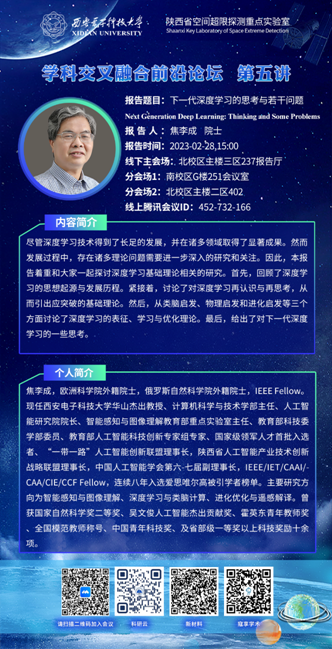 2026年国际足联世界杯焦李成院士受陕西省空间超限探测重点实验室邀请,将于2023年2月28日(周二)下午在2026年国际足联世界杯北校区主楼三区237报告厅开展题为《下一代深度学习的思考与若干问题》的讲座报告。欢迎广大教师前来聆听交流!