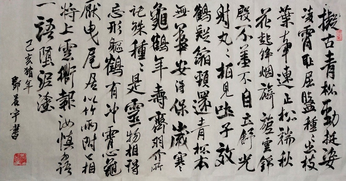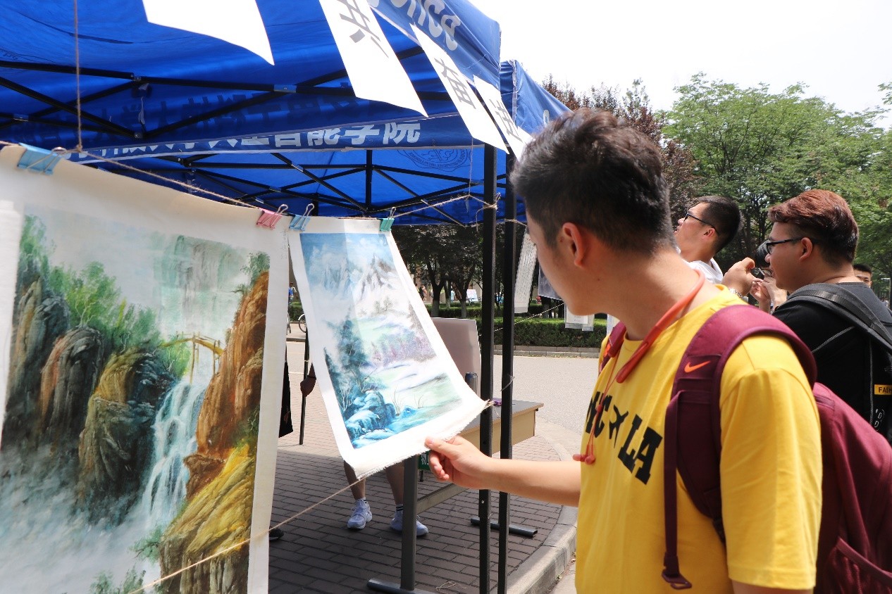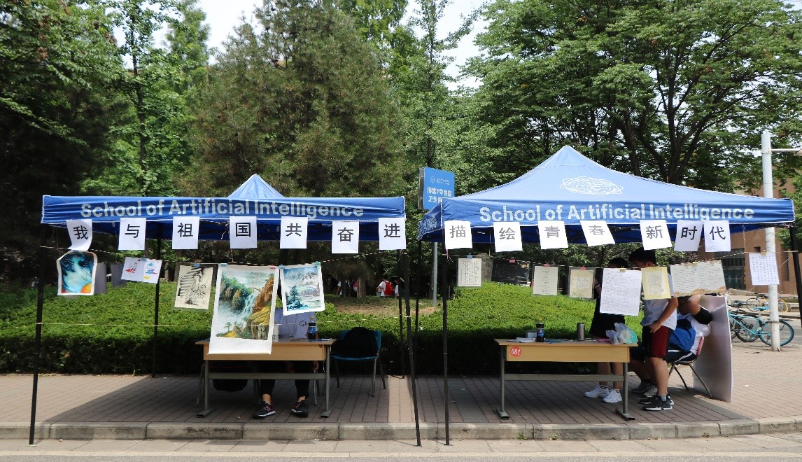 在作品收集阶段,参赛选手认真准备,闲暇之余经常能看到他们在英语角互相交流自己所提交的作品主题思想,《少年中国说》的雄壮激昂,《沁园春.长沙》的爱国豪情,时隔百年,当年的先辈们奔走呼号,为了救亡图存,如今的青年们,以笔抒怀,在书画作品中融入自己的赤子之心,表达着对祖国母亲的拳拳之心。