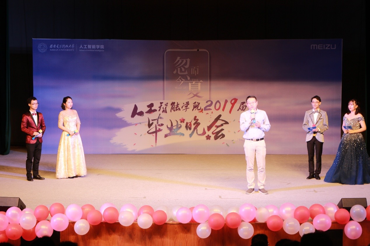 阎鑫龙作为赞助商代表,也对毕业生送上祝福。他希望毕业生走上工作岗位以后,能够继续以西电“求实 创新 砺学 笃行”的校训为鞭策,练就过硬本领,为祖国科技事业添砖加瓦,他祝福此次毕业晚会取得圆满成功。