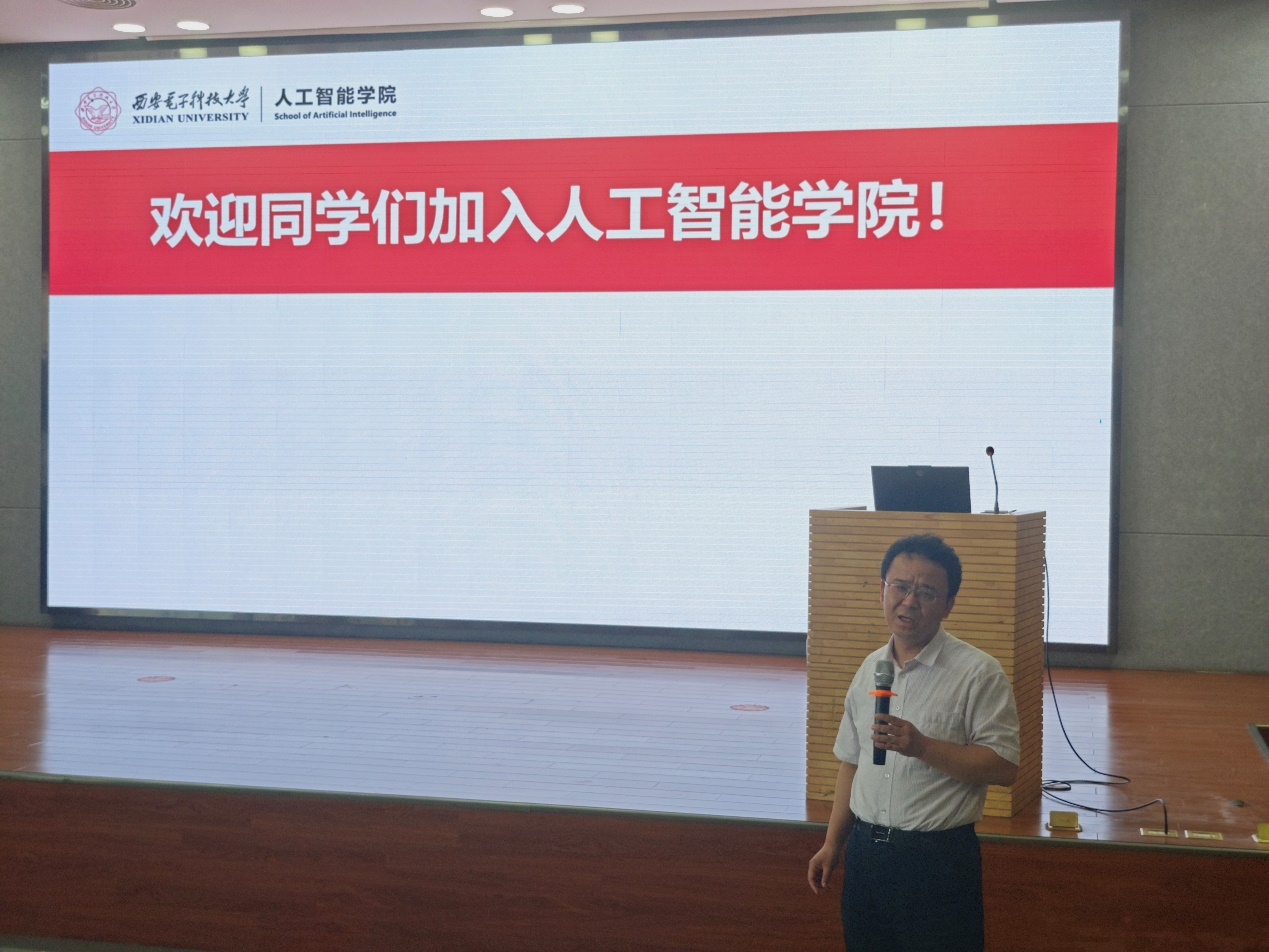 侯彪教授首先以“ ‘人工智能+’打开新质生产力大门”为题,从西电人工智能发展历程、学科方向、创新领域、突出科研成果等方面展开详细介绍,使同学们详细了解了西电人工智能领域的突出成就以及发展方向。