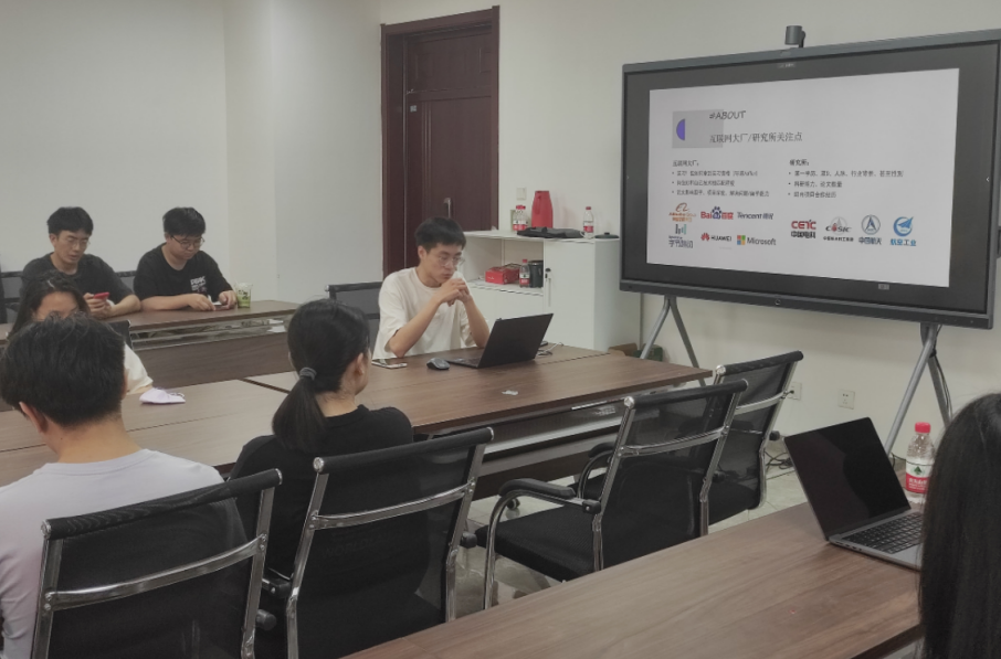 紧接着,2021级硕士研究生任俊杰讲述了他的科研经历和求职技巧。任俊杰首先从自身的科研经历出发,和现场同学们分享了如何提升科研能力、以及自己在科研途中摸索出的3点经验,如:任务梳理、多任务并行;时间管理、高效学习;知识归档、条理清晰。同时,重点分享了求职经验及方法技巧,按照招聘黄金期时间顺序,将每个月可以做何准备、如何自我定位、如何确定适合自己的岗位、招聘信息如何获取、简历如何制作、笔试面试如何准备等多个方面进行详细地分享,现场同学们对此非常感兴趣。