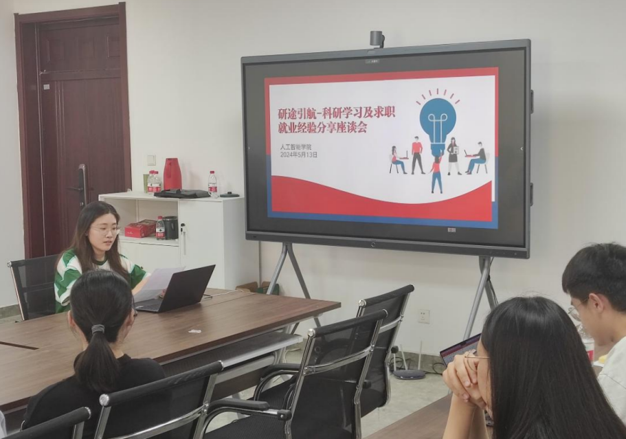 随后,2022级硕士研究生张潇文向大家分享了她在课程学习和论文写作方面的经验。张潇文同学详尽地介绍了自己学习人工智能算法的心得,推荐了优质课程资源和有用的论文学习网站,并建议大家在科研学习中积极与导师沟通,关注学术热点,有效利用信息检索工具。