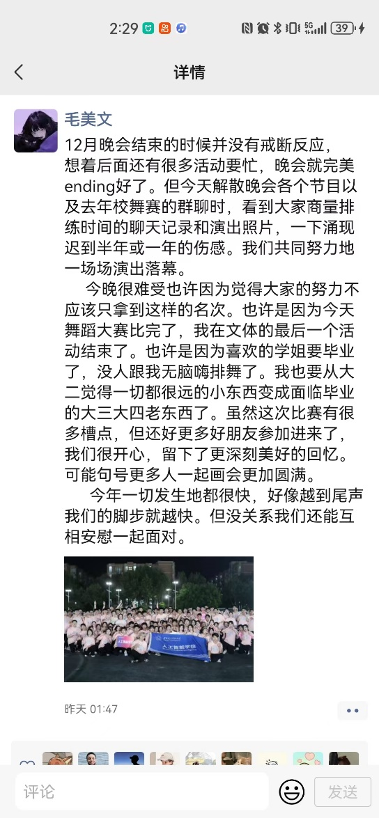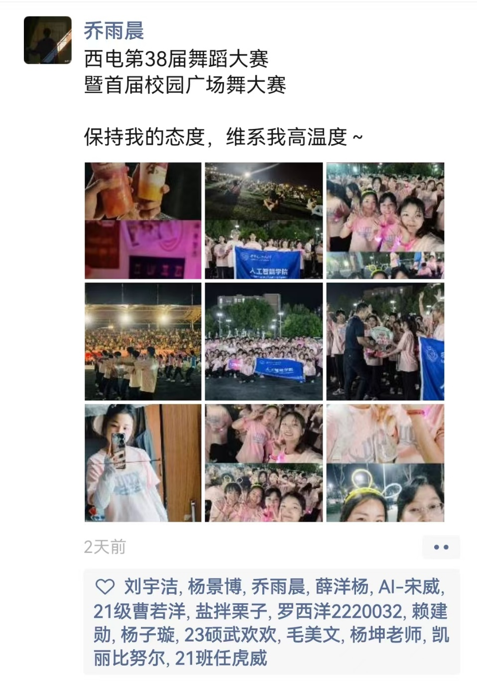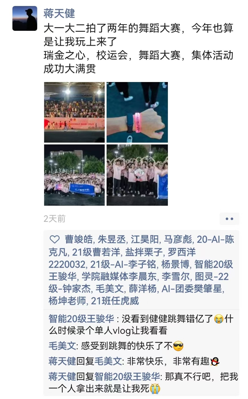 以舞之名,传递热情。此次广场舞大赛不仅响应了国家建设体育强国的目标,塑造良好的公司环境,更加展现了同学们积极进取、奋发有为的精神面貌。
