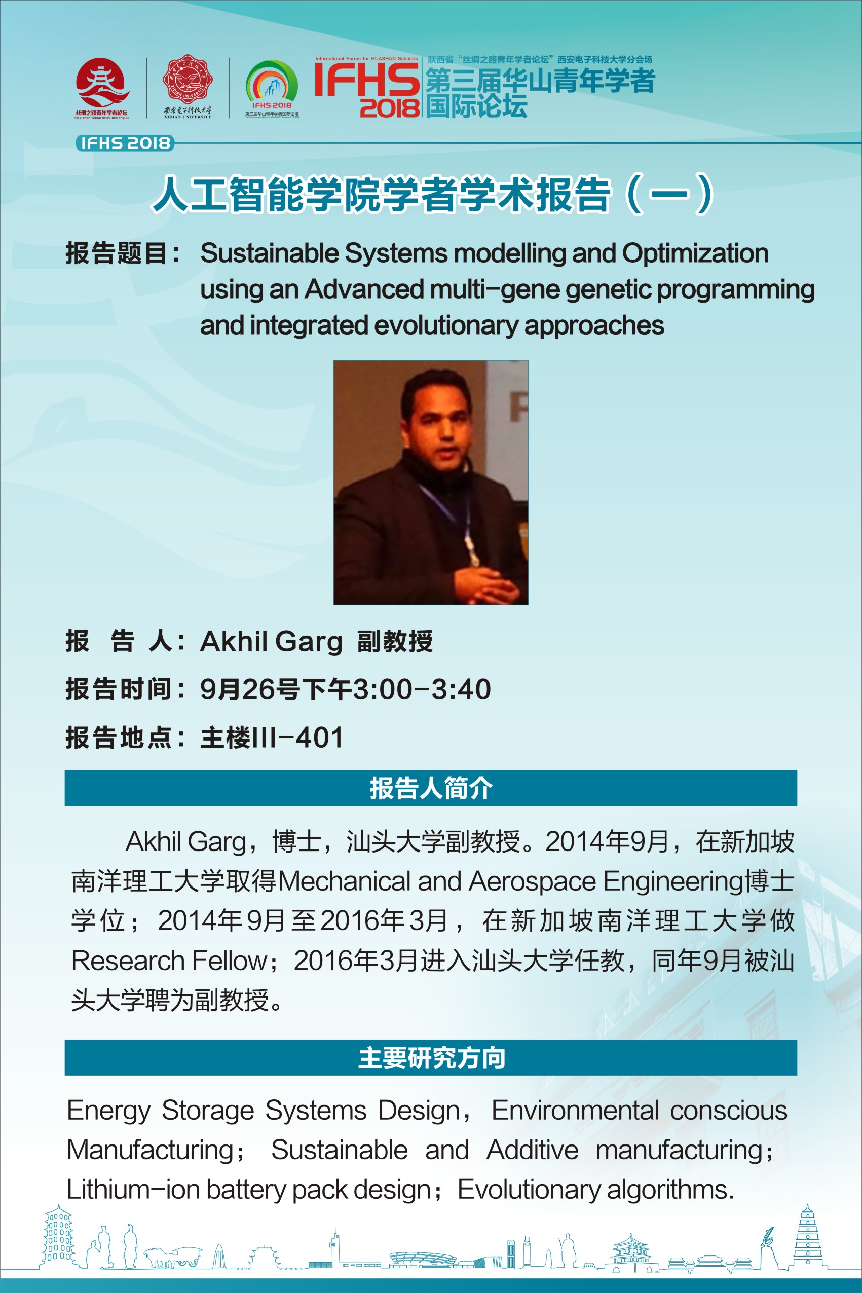 9月26日下午,Akhil Garg副教授、岳广辉 博士、薛尧博士、杨韬博士、庄丽娜博士5人将来公司参加“华山青年学者国际论坛”2026年国际足联世界杯分论坛相关活动。届时,5名青年学者将在公司做学术报告。学术报告具体信息如下: