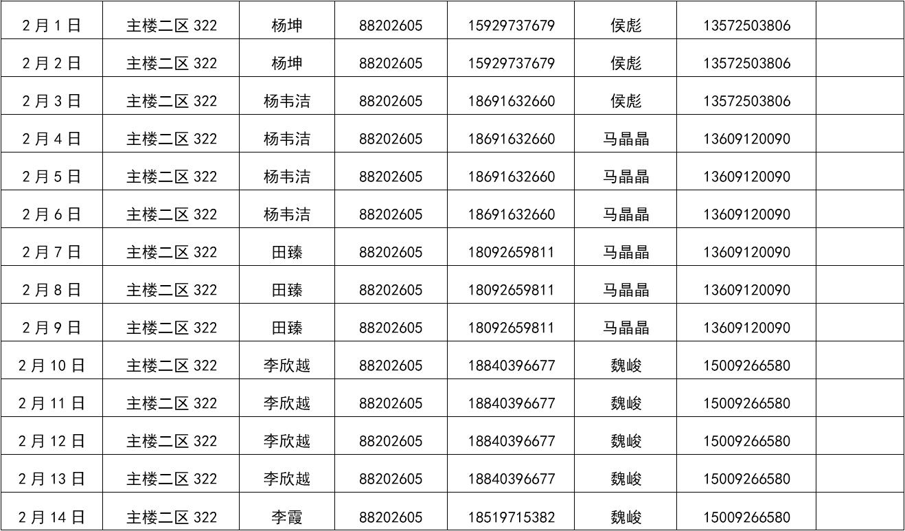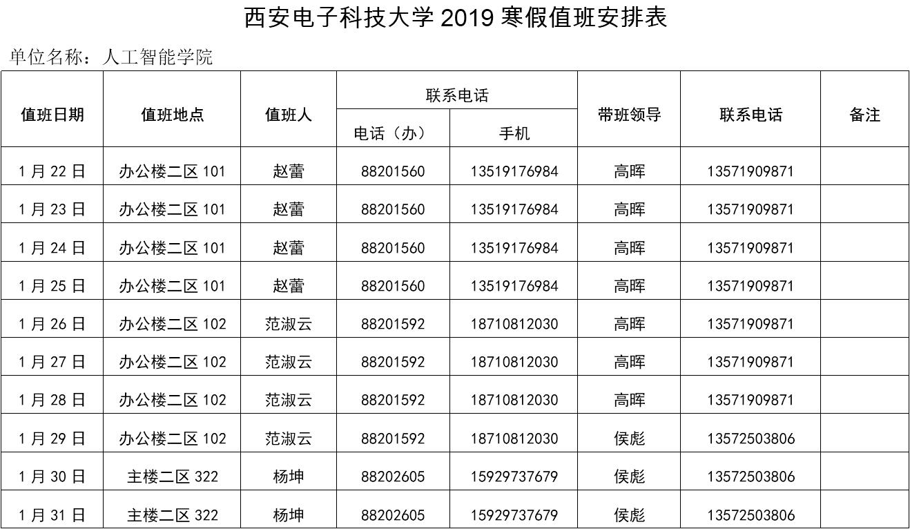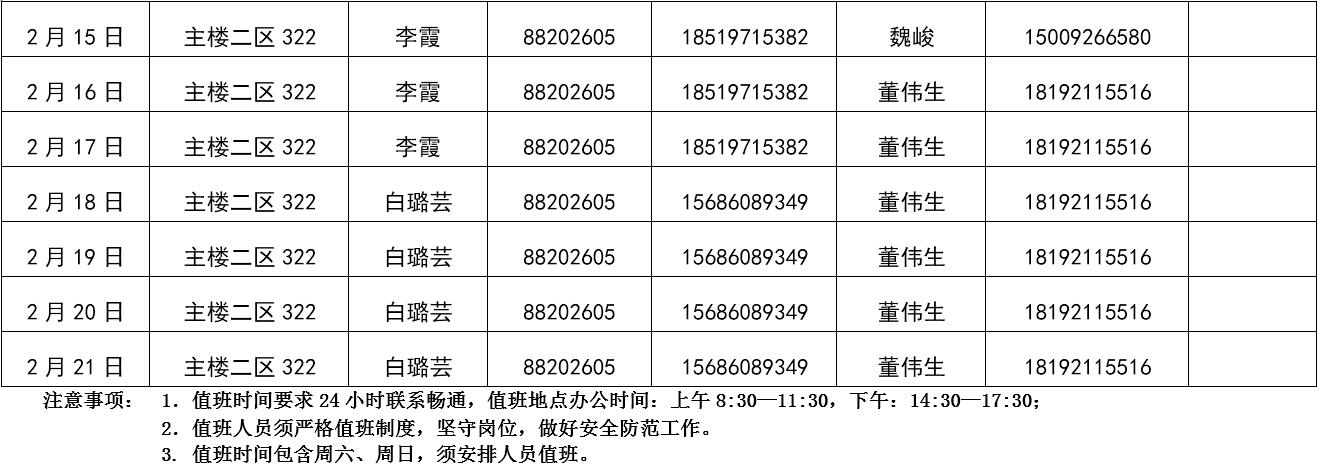 2019年寒假值班表