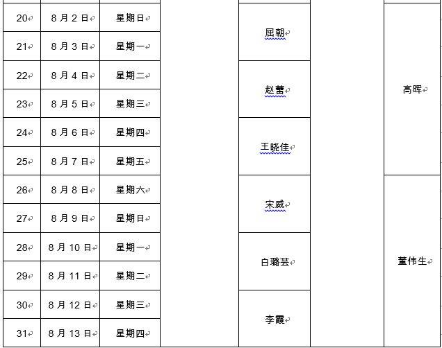 3.值班时间包含周六,周日。