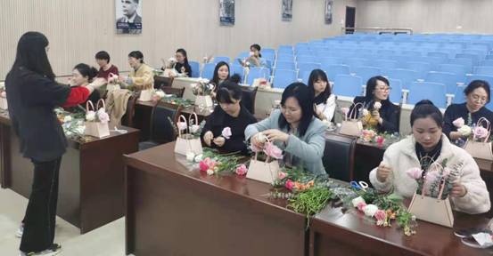 活动邀请了花艺老师为大家讲解插花基本知识及插花技巧,并进行了现场模拟插花以及互动体验,公司女教职工在专业老师的指导下积极参与和互动,互动现场弥漫着鲜花的香味,洋溢着阵阵欢声笑语,大家体验着花艺活动带来的放松,享受着欢乐的插花活动,插花活动在温馨、快乐的氛围中圆满结束。