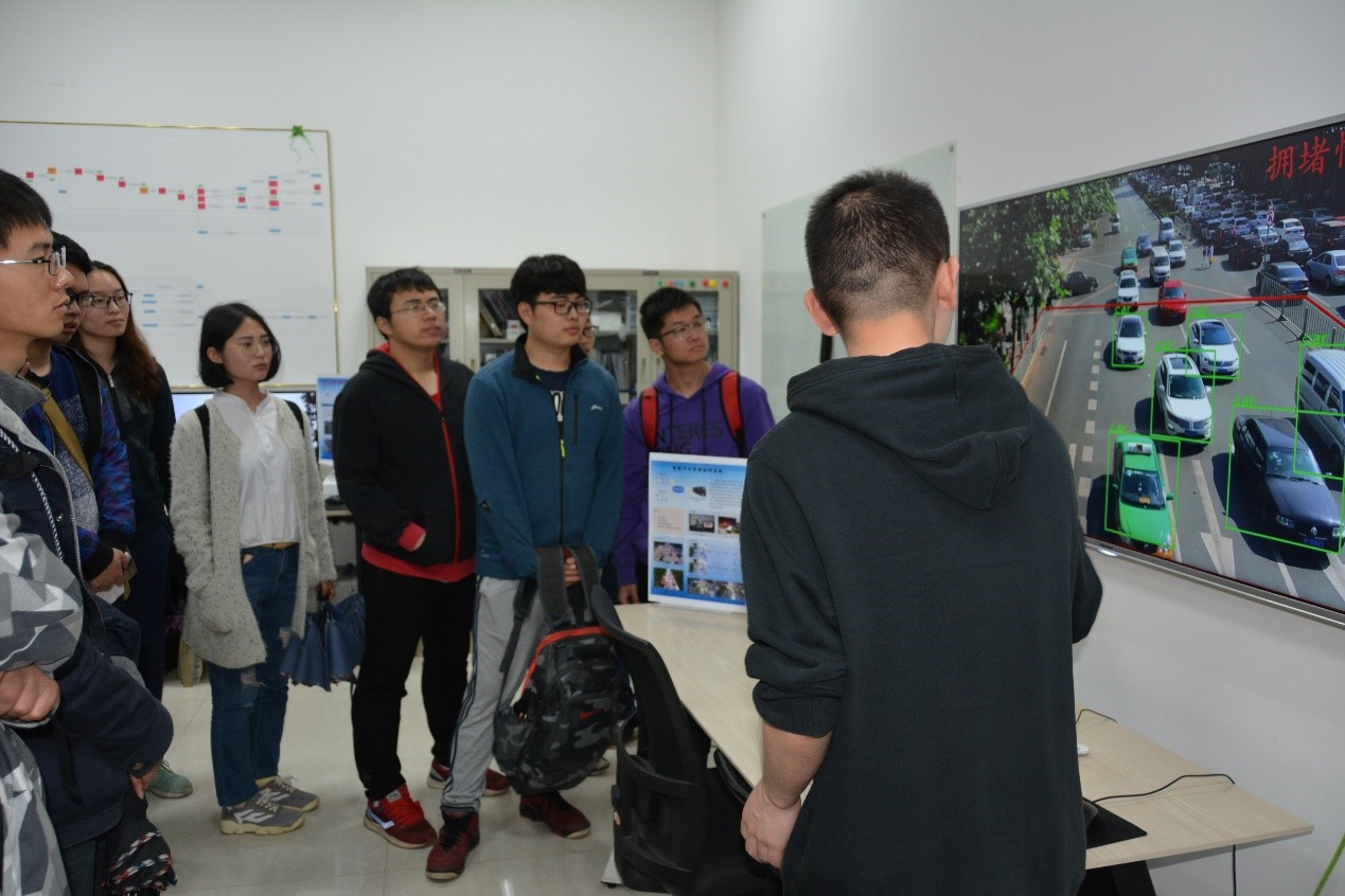 来访员工分为7个小组先后参观了视频追踪与识别实验室、光电成像与类脑感知实验室、西电-加速云联合实验室、影像大数据类脑解译实验室和智能应用创新实验室。高端的科技前沿设备,专注的科研学术氛围,给本科生们留下了深刻的印象。在参观过程中,实验室的研究生为前来参观的学弟学妹们答疑解惑,与他们热烈探讨未来人工智能发展的方向与相关领域的应用。来访本科生们被各研究团队在人工智能各个领域所取得的成就深深震撼,深刻认识到创新在理论学习和生产实际中的重要性。