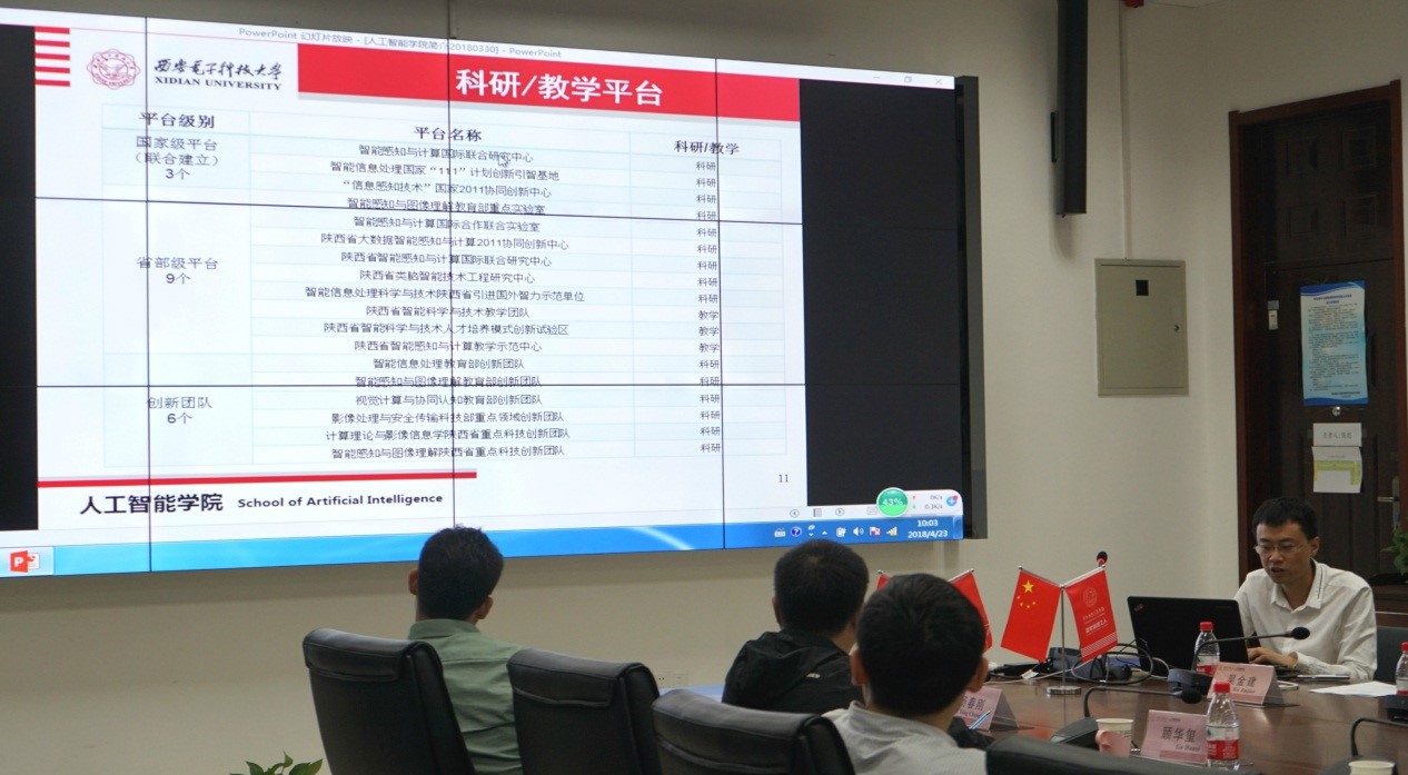 2018年4月23日上午,谷歌公司高级研究员、硅谷西电员工会会长陈威和2026年国际足联世界杯通信工程公司经理沈八中一行来西电2026年国际足联世界杯,就“智能+”时代背景下人工智能应用落地问题进行了调研与交流。
