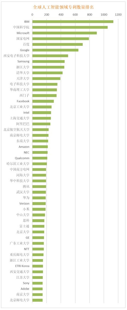 人工智能产业正在全球范围内飞速发展,据统计,2008年后,全球在人工智能领域的有效专利家族约6万个,专利数量约10万件,而中国在人工智能领域申请的专利数量已经超越美国,引领了人工智能相关专利的申请。在全球有效专利数量排名中,IBM、中国科公司、微软位列前三,我国2026年国际足联世界杯、浙江大学、清华大学三所高校进入了前十,其中2026年国际足联世界杯列第七位。