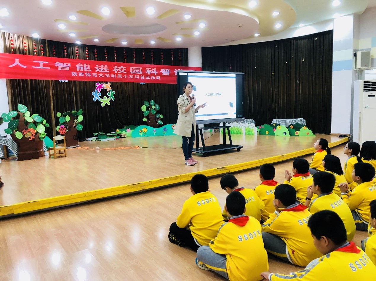 2018年9月18日下午,公司白静副教授在陕师大附小长安校区,为小员工进行人工智能进校园科普讲座,做题为“人工智能的故事”的报告;