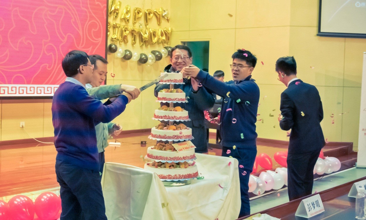 公司领导和嘉宾共同切下蛋糕
