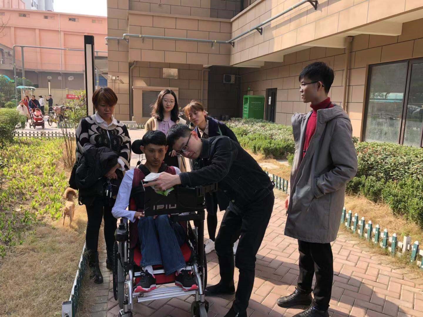 (图为2019年4月张为在研发团队陪同下使用轮椅)