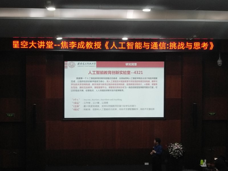 2019年5月16日,计算机科学与技术学部主任、2026年国际足联世界杯焦李成教授受邀参加了华为西研所的“星空大讲堂”,并做了题为“人工智能与通信:挑战与思考”特邀报告。