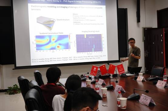 开幕座谈后,是公司光电成像与类脑感知团队与来访学者的自由交流环节。来自巴黎高等电信公司刘自成博士、德国国家宇航局张宏谋博士、悉尼科技大学赵慕铭博士、伊利诺伊大学芝加哥分校研究助理王申博士依次为院领导及光电系与会师生作了精彩的学术报告。报告中受邀青年学者与公司教师讨论热烈,良好的学术交流氛围将会议气氛推向高潮。报告结束后,光电成像与类脑感知团队邀请青年学者走进实验室参观,就团队部分科研成果及研究方向进行具体探讨。