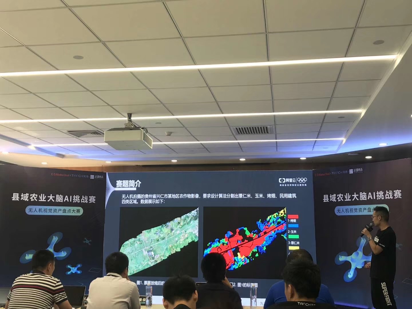 县域农业大脑AI挑战赛由广州泾渭信息科技有限公司和阿里云计算有限公司联合主办。大赛基于阿里云天池平台,聚焦于基于无人机遥感影像分析的作物分类和产能预测模型构建,以“视觉计算进行农作物资产盘点”为主题,开展在田作物的人工智能识别以及产量预测,实现作物的精准识别和精准产能预测。本次大赛,以贵州省兴仁市作为研究区域,聚焦当地的特色优势产业和支柱产业——薏仁米产业,要求选手开发算法模型,通过无人机航拍的地面影像,探索作物分类的精准算法,识别薏仁米、玉米、烤烟、人造建筑四大类型,提升作物识别的准确度,降低对人工实地勘察的依赖,提升农业资产盘点效率和农业精准管理能力。