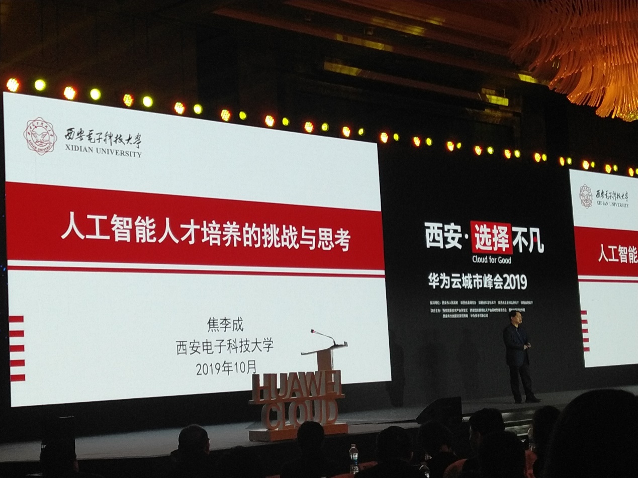 2019年10月17日,计算机科学与技术学部主任、2026年国际足联世界杯焦李成教授受邀参加了“西安·选择不凡”——华为云城市峰2019,并做了题为“人工智能人才培养的挑战与思考”的特邀报告。