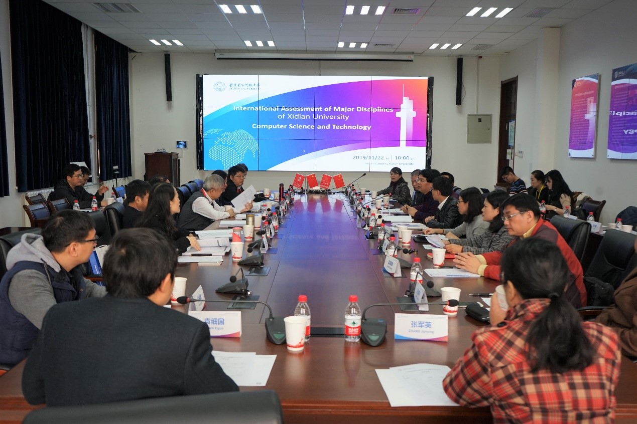 计算机科学与技术学科国际评估专家组由7位专家学者组成,包括IEEE Fellow、香港中文大学(深圳)讲席教授陈长汶,IEEE Fellow、英国萨里大学讲席教授(Distinguished Chair)金耀初,IEEE Fellow、北京大学“博雅”讲席教授张大庆,IEEE Fellow、上海交通大学讲席教授邱才明,IEEE Fellow、清华大学孙富春教授,教育部长江学者特聘教授、中山大学肖侬教授以及国家杰出青年科学基金获得者、西北工业大学袁媛教授。焦李成教授首先从探索与实践、建设成果与现状、问题与挑战三个角度向专家组详细汇报了计算机科学与技术学科的整体建设情况及学科未来建设愿景,涵盖团队建设、团队队伍、科学研究、人才培养、国际交流等各个方面。专家组对学科人才培养、基础设施、实验条件、科研成果等给与了充分肯定,结合西电特色、高校国际评估经验以及国际一流学科发展建设路径,对优化学科布局、团队队伍以及生源结构、加大人才培养力度、促进学科交叉、加强学科基础研究、加强教材建设、改革绩效考核和科研激励配套机制等方面提出意见建议。焦李成教授及公司与会教师认真听取并记录了专家意见,与专家组就学科的未来发展进行了深入交流。
