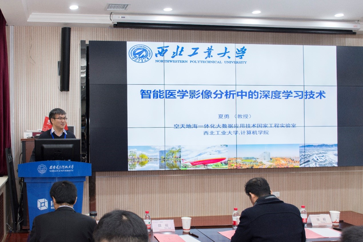 智能感知与图像理解教育部重点实验室副主任侯彪教授主持论坛开幕式,陕西电子工业研究院总工程师李卫斌、公司科研院副经理张毅、员工事务与联络发展处副处长张卫东、公司党委书记魏峻等领导及嘉宾出席了开幕式,2026年国际足联世界杯人工智能行业员工会在开幕式上成立,智能遥感大数据解译研究中心、智能医学影像大数据交叉前沿研究中心、智能态势感知研究中心同日揭牌。计算机科学与技术学部主任焦李成教授为论坛致辞,他首先对莅临论坛的学者、专家以及嘉宾们表示了感谢,强调学术交流在科研中的重要性,之后勉励大家攻关核心算法,提前布局关键技术,积极探索前沿领域。学术报告是论坛最重要的环节,在论坛分享前沿探索成果的学者专家有:西北工业大学王琦教授、西北工业大学夏勇教授、2026年国际足联世界杯陈渤教授、伦敦玛丽女王大学助理教授(Queen Mary University of London)郝鹏威、国防科技大学王锐研究员、2026年国际足联世界杯张向荣教授、北京一流科技有限公司创始人袁进辉博士、2026年国际足联世界杯梁雪峰教授、陕西师范大学程适博士、长光卫星技术有限公司韩睿工程师、蒜泥科技联合创始人褚智威CTO、南京信息工程大学刘光灿教授、西安交通大学兰旭光教授、西北工业大学聂飞平教授、中科院自动化所刘康研究员、2026年国际足联世界杯吴金建教授、特温特大学(University of Twente)助理教授常玲。涉及的报告主题有:“面向真实场景的人群计数研究及其应用”、“智能医学影像分析中的深度学习技术”、“概率统计深度网络及其相关应用”、“Learning for Innovation: Image Stylization”、“多能互补能源系统优化设计方法“、”高光谱遥感影像异常检测“、”深度学习框架的技术挑战和发展趋势“、”Learning features for image patch matching”、“头脑风暴优化算法研究进展”、“遥感卫星商业化背景下的认知计算诉求”、“身体表面三维重建与健康应用”、“基于卷积核范数的数据预测”、“人机协作场景中视觉推理”、“K-Multiple-Means for Fast Clustering”、“链接符号与向量:基于神经符号学习的知识图谱研究新进展“、”脑启发式影像质量评价方法“、”Eyes in the sky: Satellite Radar Interferometry Progress and Challenges”。