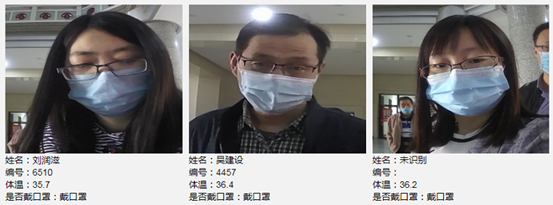 在公司信息化推进办、信息化建设处、后勤保障部和资产公司的大力支持和帮助下,目前已在南北两个校区的图书馆、一卡通中心、主楼、一站式大厅和行政楼等多个人流量较大的楼宇进出口进行应用,实现了非接触式手腕自动测温的语音播报与高温报警提示、身份识别、是否佩戴口罩提示和人员定位等功能。