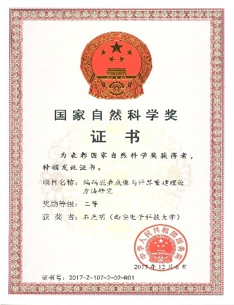 团队学术带头人石光明教授历经十余年攻关完成“编码混叠成像与计算重建理论与方法研究”,阐明了用低分辨率探测器获取高分辨率图像的机制,揭示了图像时空结构相关的计算特性,发现了感知图像结构差异性的机理,提出了适合非线性多空间结构稀疏的计算重构模型。研究成果得到了美国工程院院士T. Huang,美国科公司院士S. Osher等国际同行的高度评价,利用图像结构差异性构建的稀疏编码方法被评价为“高效且最优的”稀疏编码方法之一;图像结构化稀疏先验学习的计算机理被评价为“图像结构稀疏编码”方面的典范工作;结构化模型驱动的高分辨率重建方法被评价为“令人印象深刻的图像高分辨率重建方法之一”。“编码混叠成像与计算重建理论与方法研究”荣获2017年国家自然科学奖二等奖。