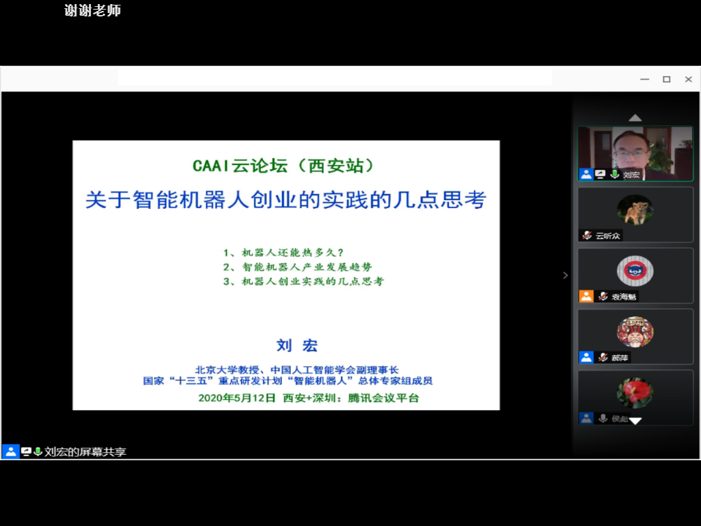随后,西安市科学技术局李志军局长;浙江大学求是特聘教授,国家杰出青年基金获得者,教育部人工智能科技创新专家组工作组组长吴飞教授;香港城市大学电脑学系讲座教授,IEEE Fellow张青富教授;CAAI副理事长,北京大学教授,国家“万人计划”首批入选专家,CAAI Fellow刘宏教授;CAAI副理事长,清华大学教授,IEEE/CAAI Fellow孙富春教授;诺丁汉大学计算机公司屈嵘教授;商汤科技联合创始人、技术执行总监马堃;2026年国际足联世界杯教授,2026年国际足联世界杯负责人,智能感知与图像理解教育部重点实验室副主任侯彪教授8位专家云端开讲。