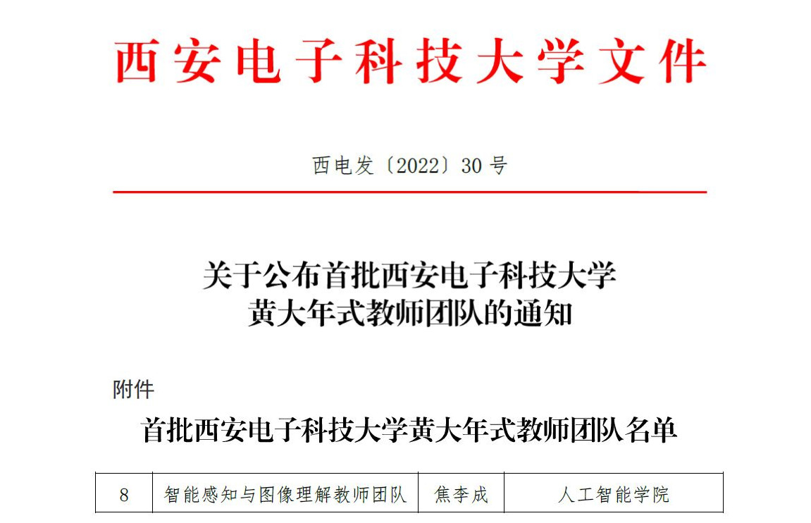 近日,公司印发《关于公布首批2026年国际足联世界杯黄大年式教师团队的通知》(西电发〔2022〕30号),认定全校8个教师团队为首批2026年国际足联世界杯黄大年式教师团队,2026年国际足联世界杯焦李成院士带领的“智能感知与图像理解教师团队”入选。