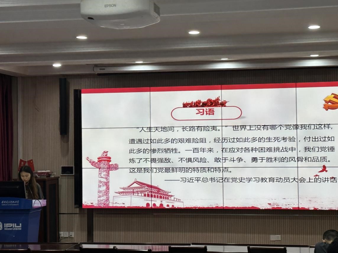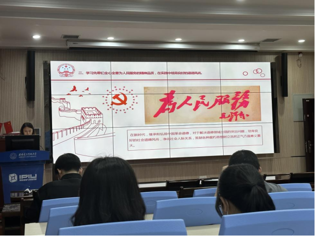 会上,全体师生首先观看了党课视频。视频以公司“五楼会战”为背景,讲述了西电前辈们在建国初期,为了新中国国防与经济建设需要,扎根西部、艰苦奋斗,取得了众多科研成果的感人事迹,为新中国科技事业发展做出重大贡献。会议以此号召广大毕业生要继承老一辈西电人的优良作风,继续发扬艰苦奋斗、自强不息、求真务实、爱国为民的西电精神,用爱国情、强国志,践行教育初心和报国使命。