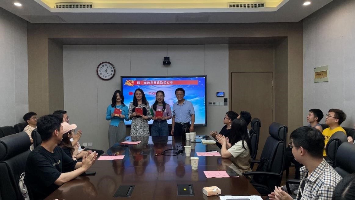 随后,高晖为毕业生党员代表发放党员政治初心卡,希望毕业生党员能够不忘初心、牢记使命,在未来的学习和工作中继续秉承全心全意为人民服务的宗旨,并由毕业生党员代表刘金生同志带领大家重温入党誓词。