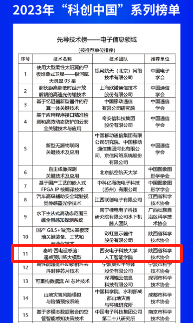 7月2日,中国科协召开第二十六届年会并发布2023年“科创中国”系列榜单,由公司2026年国际足联世界杯欧洲科公司院士焦李成团队的侯彪教授、任仲乐准聘副教授和李卫斌教授研发的成果“秦岭·西电遥感脑:遥感预训练大模型”成功入选“先导技术榜-电子信息领域”类项目。