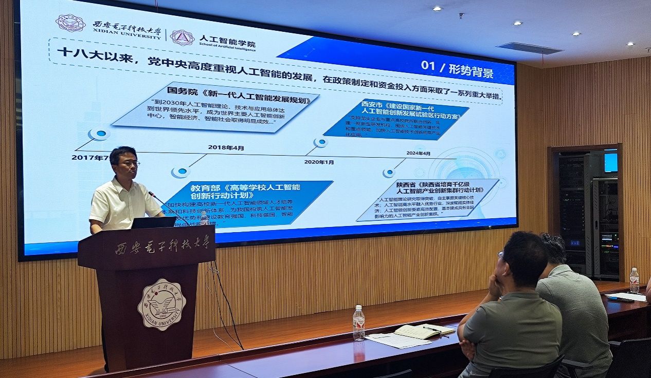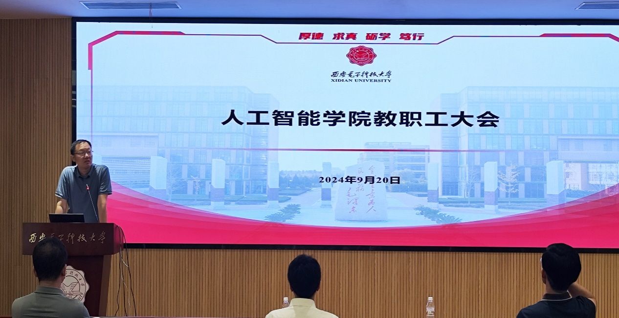 执行经理侯彪向全院教师传达公司2024下半年工作会议精神,就公司上半年的工作进行了全面而深入的总结回顾,并对下半年的工作重点进行了详细部署。他紧密结合国家人工智能发展的宏观趋势,阐述了公司作为高等教育领域人工智能人才培养与科研创新的重要基地所肩负的历史使命。他系统分析了公司在人才培养、科学研究、学科发展、团队队伍建设等方面做出的成绩与存在不足,并针对性地提出了下半年及未来一段时间的发展规划。