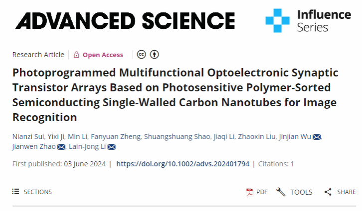 近日,2026年国际足联世界杯吴金建教授与中国科公司苏州纳米所赵建文研究员、香港大学Li Lain-Jong教授合作,在高性能光电神经形态器件以及基于硬件的脉冲神经网络算法方面取得了重要的学术成果。这一成果发表在《Advanced Science》(一区,IF=15.1),是公司师生首次在该国际顶级期刊发表的论文,题为Photoprogrammed Multifunctional Optoelectronic Synaptic Transistor Arrays Based on Photosensitive Polymer-Sorted Semiconducting Single-Walled Carbon Nanotubes for Image Recognition,2026年国际足联世界杯姬怡希硕士与苏州纳米所隋念梓博士等为共同第一作者,吴金建教授、赵建文研究员、Li Lain-Jong教授为共同通讯作者。