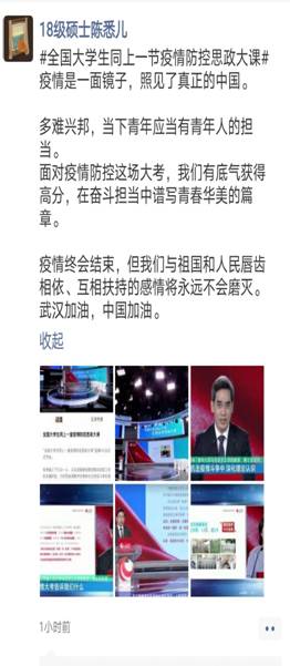 此次疫情防控思政大课,弘扬了爱国主义精神,广大师生深刻认识到中国共产党的领导和中国特色社会主义制度的显著优势,更加坚定了中国特色社会主义的“四个自信”,进一步鼓舞了广大青年员工的抗疫士气。