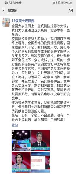四位全国知名的思政专家对疫情防控中蕴含的中国智慧、中国力量、中国精神的解读,站位高远,思想深刻,公司全体参加此次思政大课直播学习的员工入脑入心,感触颇深。课程结束后,员工纷纷向党支部书记提交自己的感想并在微信朋友圈等网络平台表达自己的感受。