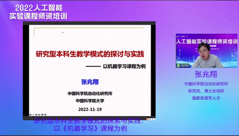 中国科公司自动化研究所张兆祥研究员带来“研究型本科生教学模式的探索与实践:以《机器学习》课程为例”的报告。他对团队机器学习领域的学术基础和研究成果进行介绍。在课程教学方面,实验环节设计与项目研究相结合,帮助员工在各种应用场景中开展实践,相关成果在国内外学科竞赛中取得了优异成绩。接下来,他从机器学习这门课程的特点出发,给大家分享如何把握“经典与前沿并重”、“理论与实践并重”、“教学与研讨并重”,从实际问题出发,基于经典的优化案例,紧跟国际前沿研究成果,帮助员工掌握良好的问题解决方法。最后,他对员工在艺术创作、辅助驾驶等方面的优秀应用成果进行展示。科研项目和竞赛题目融入实验实践培养的优秀案例,为高校人工智能人才的创新能力培养起到很好示范作用。