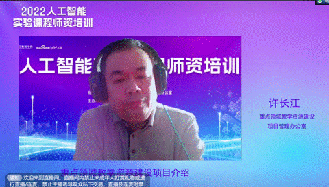 重点领域教学资源建设项目管理办公室许长江表示,此次培训活动的举办为广大人工智能专业教师提供了很好的平台,对人工智能实验课程的建设具有重要意义。他指出,人工智能实验课程是专业教学中的重要板块,但相对理论教学而言,实验教学环境条件和团队力量目前都非常缺乏。希望国内先进高校和头部企业发挥积极作用,通过优质资源共享和团队力量培训,逐步构建起较为完整的实验教学体系,带动全国高校同类专业课程建设整体水平的提升。同时,希望更多专家学者在重点领域项目建设过程中,发挥虚拟教研室的作用,持续推进人工智能实验领域的知识图谱建设,将实验资源建设和员工能力素质培养有效关联,用完整的实验教学体系支撑人才培养目标实现。