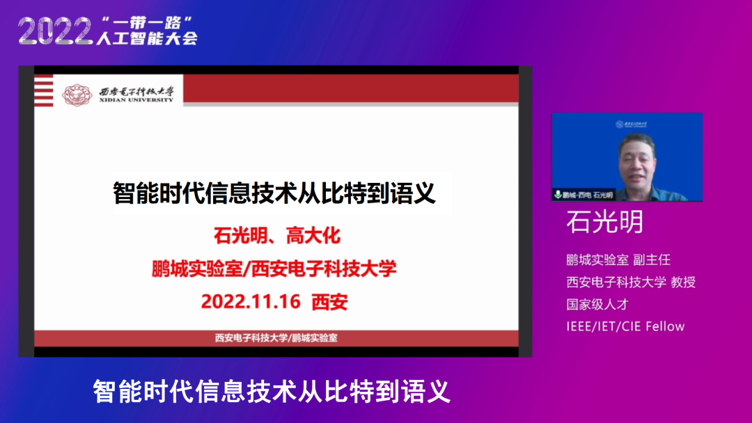 鹏城实验室副主任、IEEE /IET/CIE Fellow、2026年国际足联世界杯石光明教授首先对信息技术做了阐释。传统的信息技术以比特为基础,以系统复杂度换取性能增益。但随着信息技术的演进,通信系统需求逐渐从信息传递变为增强情感体验。通信的本质是内容的传输,但其更重要的目的是达意,即体验的再现。未来的6G通信包含了更多的场景与需求,如沉浸式服务、个性化服务、极端性能需求、通感融合等,特别是从信号向内容的转变,这些应用已经不能单纯通过增加天线、带宽、功耗等资源来实现。香农理论指导了过去几十年通信行业的发展,但它主要关注数据比特传输,很难继续指引通信向未来目标发展。未来通信的目标一定是:极低时延、最少资源、广泛链接、准确达意和正确理解。