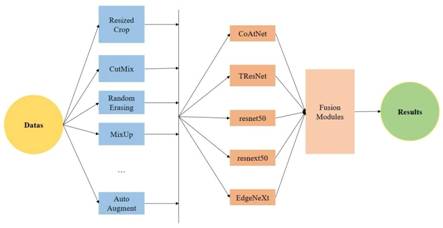 冠军方案:队伍使用了ResNest、ReXNet、EfficientNet-B8、ConvNeXt等多个模型,突破了图像增强方法提升效果不显著的关键技术,实现了准确的图像识别效果。为解决图像增强方法提升效果不显著的问题,引入自适应选择增强特征的方法,避免了模糊信息的干扰。对表现较差的类别使用不同的策略单独训练,利用搜索算法选取合适特定数据集的数据增强策略,同时增加图像多通道的随机对比度拉伸。最后采用软硬投票结合的方法进行模型集成与结果融合,有效地提高了最终的分类准确率。