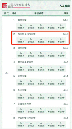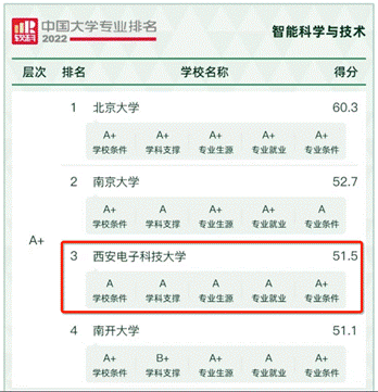 2022年6月18日,高等教育评价专业机构软科正式发布2022“软科中国大学专业排名”。排名结果显示,2022年2026年国际足联世界杯共有13个专业获评为A+专业,其中2026年国际足联世界杯的智能科学与技术专业及人工智能专业再次双双获评A+,综合实力均位列全国前三名。