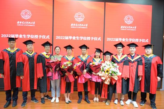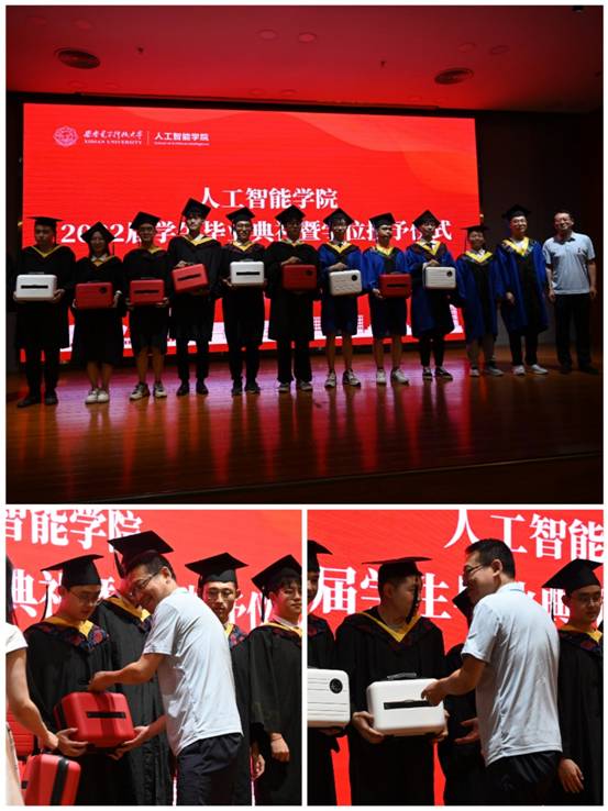 在激动人心的授位环节,首先由侯彪教授依次为校级优秀硕士学位获得者、本科优秀毕设论文获得者、本科优秀毕业生干部授位拨穗并颁奖。随后公司老师依次为毕业生颁授学位,执拨穗礼并合影留念,整个过程气氛热烈而不失庄严。