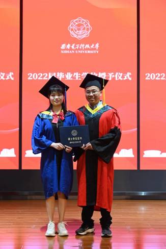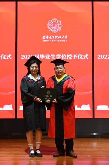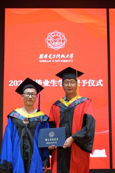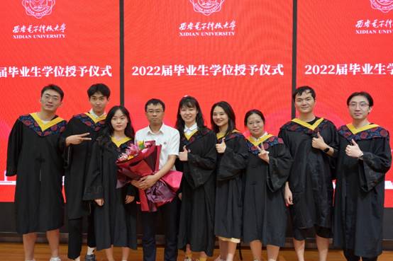 毕业典礼庄严的国歌声中拉开了序幕,侯彪教授代表公司全体教职员工,向圆满完成学业的同学们表示热烈的祝贺,同时向所有为毕业生成长保驾护航的老师、亲友们致以衷心的感谢。他寄语同学们,要心怀“国之大者”,秉承家国情怀,施展抱负、建功立业;要坚持终身学习,踏实笃定,自强不息,不畏困难,敢于突破;要做生活的乐观主义者,阳光、向善、坚韧、平和,悦纳自己,向阳向上。最后他激励同学们,赓续西电红色血脉,不负时代、砥砺前行!