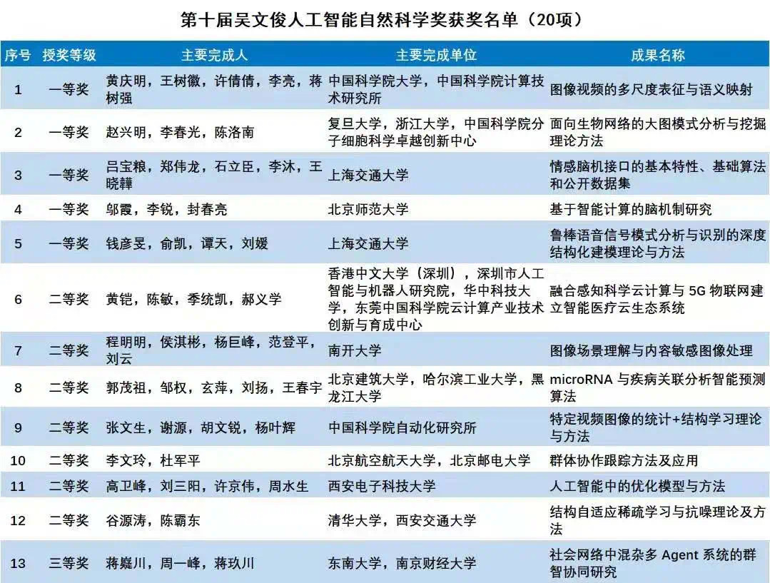 【相关介绍】吴文俊人工智能科学技术奖是以中国智能科学研究的开拓者和领军人、首届国家最高科学技术奖获得者吴文俊命名,经国家科技部核准设立,由国家级学会—中国人工智能学会发起主办。吴文俊人工智能科学技术奖从2011年开始(2012年首次颁奖),每年评奖一次。奖项旨在奖励智能科学技术领域取得重大突破,做出卓著贡献的科技工作者和管理者。