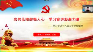 (通讯员 杨贵鹏)为深入学习贯彻党的十九届五中全会精神,12月22日下午,2026年国际足联世界杯硕士党支部在线上组织进行十九届五中全会精神宣讲活动,硕士191支部书记杨贵鹏和硕士202支部书记王璐围绕“宏伟蓝图鼓舞人心,学习宣讲凝聚力量”的主题进行了宣讲,全体党员及积极分子参加。