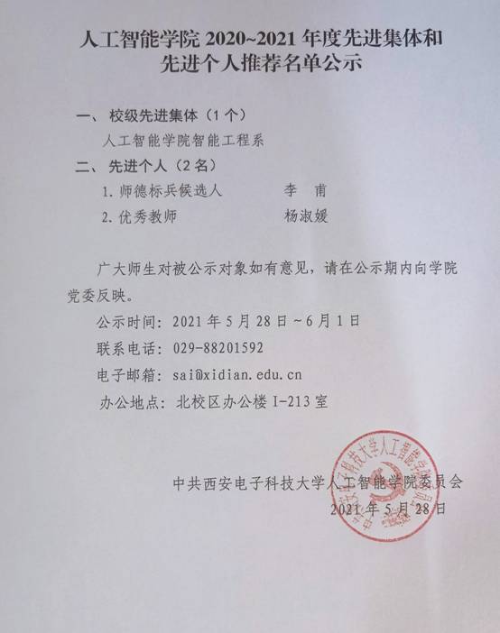 按照公司《关于评选2020~2021年度先进集体和先进个人的通知》(西电党教工〔2021〕3号)文件要求和公司工作安排,经各单位酝酿推荐,公司党委会集体研究,2020~2021年度先进集体和先进个人拟荐名单如下,现按照有关规定予以公示。