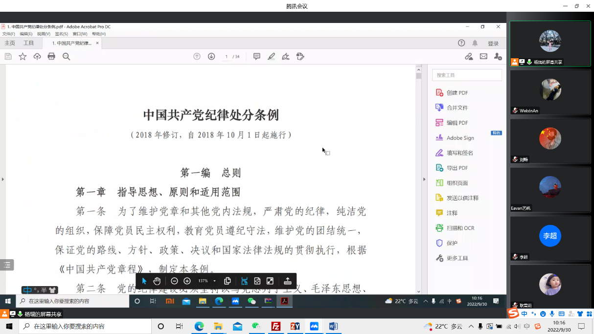 博士第一党支部通过线上线下的方式开展“严守纪律规矩加强作风建设”专题研讨会,学习《党员干部纪律教育学习读本》,观看纪律教育公开课,进行主题讨论和发言,在研讨交流中凝聚思想共识,坚定理想信念,增强政治定力,提高廉洁自律意识。围绕党规党纪教育,组织支部全体党员在线上参加了党纪法规知识测试考试。此次活动让党员们更加深刻地认识和了解了党纪法规知识,同时充分检验了党员们的学习成效,营造了以考促学、以考促廉的浓厚氛围,强化了党纪法规意识。在前期学习的基础上,博士第一党支部组织召开了以“严守纪律规矩加强作风建设”为主题的专题组织生活会,党员结合集体学习、个人自学、党规党纪知识测试和警示教育活动的收获、结合岗位职责和履职尽责等个人实际情况,谈认识、谈体会,仔细查摆问题,深刻剖析原因,主动开展批评与自我批评,就存在的问题提出努力方向和整改措施,进一步纠作风、改作风、转作风,为公司的各项事业发展敢拼敢闯、勇挑重担,从不同角度贡献自己的力量。